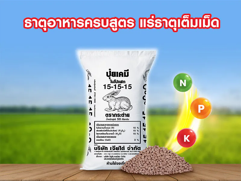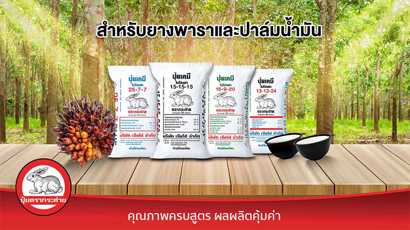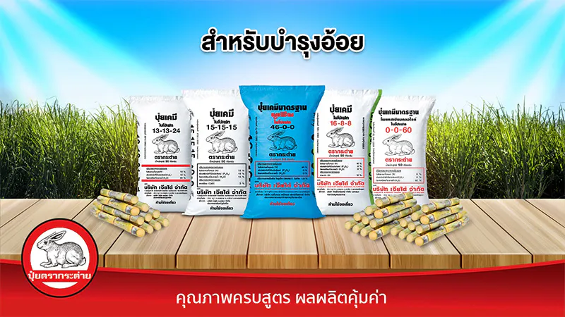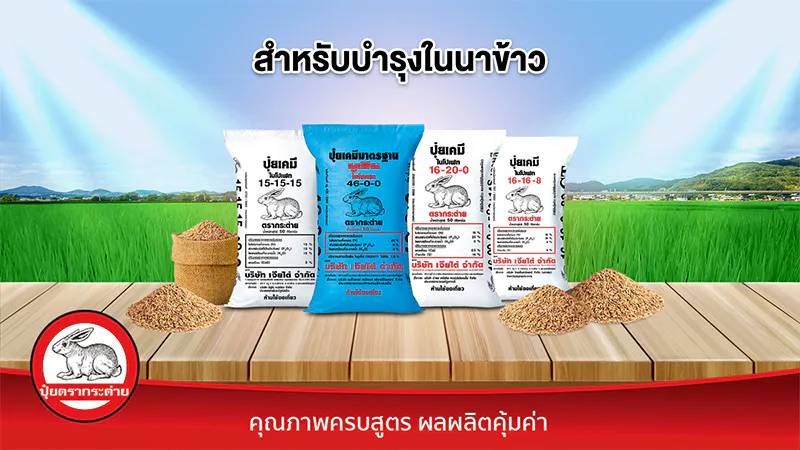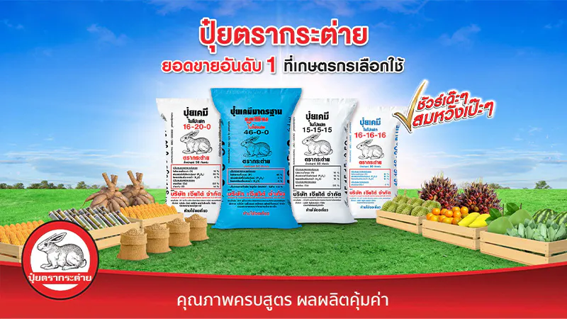 - สำหรับพืชผักและไม้ผล แนะนำบำรุงด้วยปุ๋ยตรากระต่าย สูตร 25-7-7 บลู, ปุ๋ยตรากระต่าย สูตร 16-16-16 บลู, ปุ๋ยตรากระต่าย สูตร 9-25-25, ปุ๋ยตรากระต่าย สูตร 15-9-20 และปุ๋ยตรากระต่าย สูตร 13-13-24 บลู ด้วยคุณสมบัติเด่นของปุ๋ยตรากระต่าย ที่เม็ดปุ๋ยละลายง่าย ทำให้พืชสามารถนำไปใช้ได้ไว และประยุกต์ใช้กับระบบน้ำหยดได้ดี