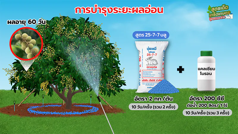 อย่างไรก็ตาม การบำรุงและดูแลลำไยให้ได้ผลผลิตคุณภาพสูงนั้น เป็นโจทย์ที่ท้าทายไม่น้อย เพราะโดยมากมักพบปัญหาลำไยออกดอกน้อย ติดผลยาก ผลอ่อนร่วง ไปจนถึงผลแตกเสียหายช่วงใกล้เก็บเกี่ยว ซึ่งล้วนส่งผลกระทบโดยตรงต่อปริมาณ คุณภาพ และราคาผลผลิตในที่สุด