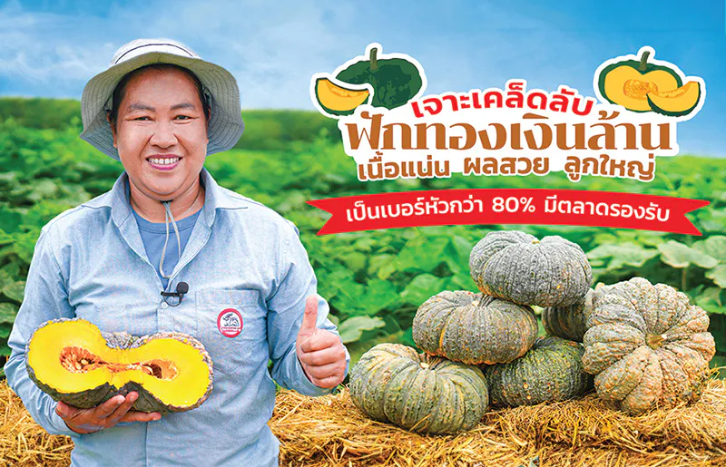 ทั้งนี้ ปัจจัยที่ทำให้ฟักทองสามารถเจริญเติบโตได้ดีไม่ได้อยู่ที่การบำรุงเท่านั้น แต่ยังมีเรื่องของการจัดการภายในแปลง อย่างการ “จัดเถาฟักทอง” และ “การต่อดอก” ที่เกษตรกรต้องใส่ใจเป็นพิเศษ