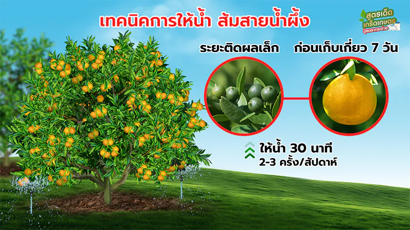 อย่างไรก็ตาม การปลูกส้มสายน้ำผึ้งให้ได้คุณภาพตรงตามความต้องการของตลาด ก็ไม่ใช่เรื่องง่าย เนื่องจากมักพบปัญหาเรื่องการดูแลทำให้ผลส้มมีขนาดเล็ก ไม่ได้ไซซ์ตามต้องการ รวมทั้งปัญหาผลแตก ผลหลุดร่วงก่อนเก็บเกี่ยว ดังนั้น เกษตรกรจำเป็นต้องอาศัยการจัดการดูแลอย่างเหมาะสม ทั้งด้านการให้น้ำ, การควบคุมโรค-แมลงศัตรูพืช ตลอดจนการบำรุงที่สอดคล้องกับความต้องการของพืช ตั้งแต่ “ระยะฟื้นต้น-ทำใบ”, “ระยะสะสมอาหาร” ไปจนถึง “ระยะติดผล” เพื่อให้ได้ผลผลิตส้มสายน้ำผึ้ง ผลใหญ่ เป็นเบอร์ 5-6-7 เกรดพรีเมี่ยม ผิวเข้าสีสวยสม่ำเสมอ ซึ่งหากมีการวางแผนช่วงเก็บเกี่ยวให้ตรงกับช่วงที่ตลาดมีความต้องการสูง อย่างช่วงเทศกาลปีใหม่หรือตรุษจีน ก็จะช่วยเพิ่มมูลค่าผลผลิตได้มากขึ้นไปอีกด้วย