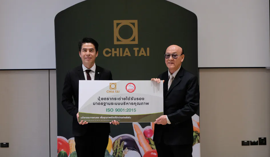 การได้รับรองมาตรฐานระบบบริหารคุณภาพ ISO9001:2015 ถือเป็นอีกหนึ่งการตอกย้ำความมุ่งมั่นของเจียไต๋ในการพัฒนาผลิตภัณฑ์ให้ได้คุณภาพมาตรฐานระดับสากล ตามวิสัยทัศน์ในการส่งมอบนวัตกรรมการเกษตรเพื่อคุณภาพชีวิตที่ดีกว่าอย่างยั่งยืนสู่ผู้คนทั่วทั้งภูมิภาค