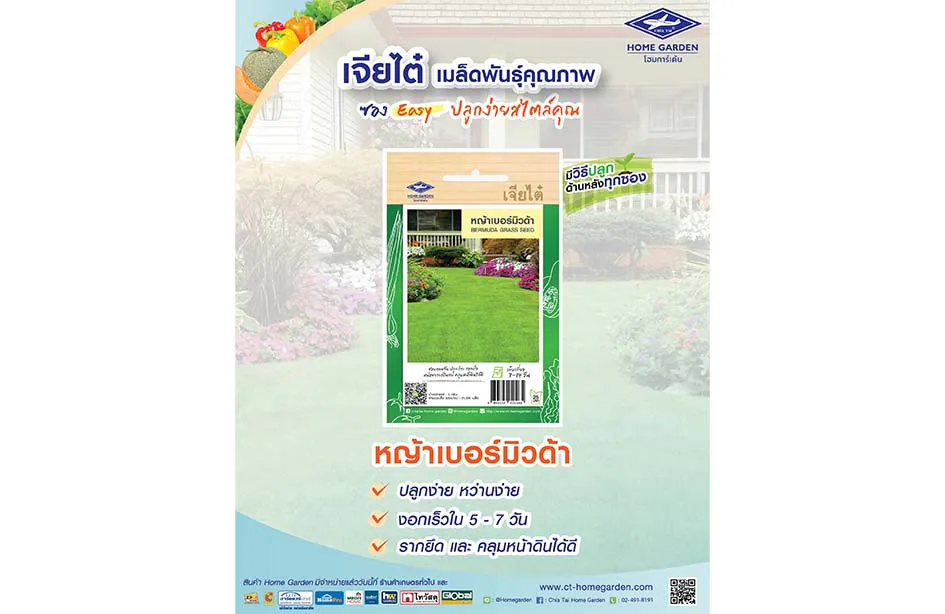 กรุงเทพฯ 15 ตุลาคม 2564 – เจียไต๋ โฮมการ์เด้น โดยกลุ่มบริษัทเจียไต๋ ผู้นำธุรกิจนวัตกรรมการเกษตรของไทย ส่งสินค้าใหม่แกะกล่องที่จะช่วยให้การทำสวนของคุณพ่อบ้านคุณแม่บ้านง่ายและสะดวกสบายยิ่งขึ้น อาทิ เมล็ดพันธุ์หญ้าเบอร์มิวด้า ปลูกง่าย หญ้าขึ้นเร็วภายใน 5-7 วัน ช่วยคลุมหน้าดินได้ดี รากยึดแน่น ให้การปลูกหญ้าบนสวนสวยๆ เป็นเรื่องธรรมดาที่ใครๆ ก็ทำได้ และสำหรับผู้ที่รักสุขภาพ เจียไต๋ โฮมการ์เด้น ขอเสนอเมล็ดพันธุ์ต้นอ่อนข้าวสาลี ที่สามารถปลูกได้ทั้งในที่ร่มและกลางแจ้ง ปลูกง่าย โตไว สามารถนำต้นอ่อนข้าวสาลีไปคั้นเป็นเครื่องดื่มหรือทำน้ำสลัดที่ดีต่อสุขภาพ อุดมด้วยสารอาหารและวิตามิน