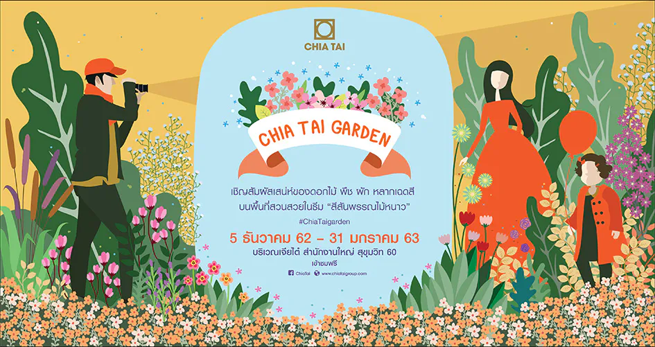 เนื่องด้วยโอกาสส่งท้ายปีเก่าต้อนรับปีใหม่ เจียไต๋ร่วมเป็นส่วนหนึ่งในการส่งต่อความสุขให้ชาวไทย ในช่วงเทศกาลคริสต์มาสและปีใหม่ โดยปรับเปลี่ยนภูมิทัศน์บริเวณลานหน้าอาคารสำนักงานใหญ่ ขนาด 400 ตารางเมตร ให้กลายเป็นสวนสวยงามที่อุดมด้วยผักและดอกไม้เมืองหนาวกว่า 10,000 ต้น ที่ส่งตรงจากภาคเหนือมาเพื่องานนี้โดยเฉพาะ เช่น กุหลาบพันปี ไซคาแมน บีโกเนีย เทียนนิวกินี เป็นต้น มาพร้อมกับพืชผักนานาชนิดจากสายพันธุ์ชั้นเลิศ ที่พัฒนาจากนวัตกรรมการเกษตรอันล้ำสมัยของเจียไต๋ ได้แก่ ผักกะหล่ำ ผักกาดขาวปลี กวางตุ้ง มะเขือเทศเชอรี่ และคะน้า ตั้งเป้าเป็นอีกหนึ่งแลนด์มาร์คกรุงเทพฯ ช่วงเทศกาลส่งความสุข นอกจากลานสวนผักและดอกไม้แล้ว เจียไต๋ยังได้จัดตกแต่งสถานที่ด้วยไฟประดับ เพื่อสร้างบรรยากาศสุดพิเศษยามค่ำคืน พร้อมให้ทุกคนได้เก็บภาพความประทับใจในแบบที่ไม่ซ้ำใคร ภายใต้บรรยากาศที่สวยงามด้วยพืชผักและผลผลิตจากธรรมชาติ พร้อมเปิดให้ประชาชนเข้ามาเยี่ยมชม ระหว่างวันที่ 5 ธันวาคม 2562 ถึง 31 มกราคม 2563 ตั้งแต่เวลา 8.00 – 21.00 น. โดยไม่คิดค่าใช้จ่าย อีกทั้งยังสามารถร่วมสนุกกับกิจกรรมถ่ายภาพและแชร์ผ่านโซเชียลมีเดียเพื่อลุ้นรับรางวัลมากมาย โดยสามารถดูรายละเอียดเพิ่มเติมได้จากเฟซบุ๊ก https://www.facebook.com/Chiatai.group.official/