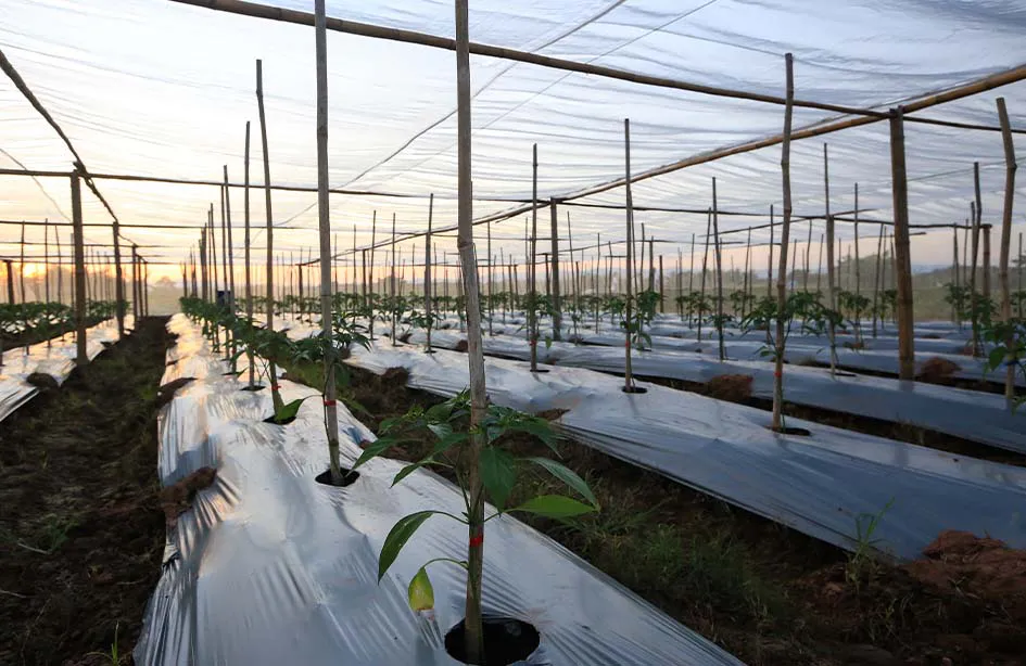 ซึ่งหนึ่งในนวัตกรรมของเจียไต๋อย่างเทคโนโลยีโรงเรือนจะช่วยให้เกษตรกรสามารถดูแลและป้องกันพืชผลจากสภาพแวดล้อม ทั้งยังช่วยป้องกันแมลง ลดความเสี่ยงในการเกิดโรคในพืช นอกจากนี้ ระบบภายในโรงเรือนยังสามารถควบคุมการให้น้ำให้ปุ๋ย รวมถึงช่วยวัดอุณหภูมิและความชื้นได้อย่างแม่นยำ โดยประเภทของโรงเรือนนั้นจำแนกออกเป็นลักษณะต่างๆ ตามความต้องการของพืชและลักษณะพื้นที่เพาะปลูก ซึ่งโรงเรือนที่เป็นที่นิยมและเหมาะสมสำหรับสภาพอากาศของไทยจะเป็นโรงเรือนแบบหลังคาโค้ง 2 ชั้น ที่ช่วยระบายความร้อนและความชื้นได้ดี และระบบเพิ่มเติมภายในโรงเรือนที่เหมาะสมคือระบบปรับอากาศแบบอีแวปโพเรชั่น (Evaporation) ระบบพัดลม และระบบพ่นหมอก ที่จะช่วยเพิ่มประสิทธิภาพในการลดและระบายความร้อนรวมถึงความชื้น ซึ่งการนำไปใช้งานเกษตรกรสามารถเลือกและประยุกต์ใช้ได้ตามความเหมาะสมของตน โดยผสมผสานวิธีทำเกษตรแบบเดิมกับการเกษตรแบบใหม่ด้วยการแบ่งสัดส่วนพื้นที่ในแปลง