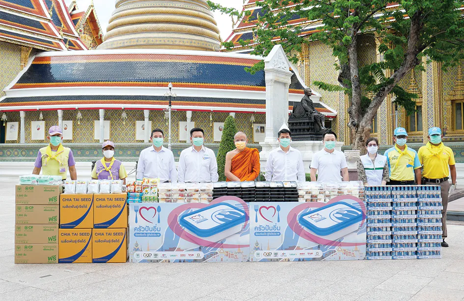 พร้อมกันนี้ คณะผู้บริหารเครือเจริญโภคภัณฑ์ ได้ถวายข้าวกล่องจำนวน 15,000 กล่อง และหน้ากากอนามัยซีพี 50,000 ชิ้น แด่สมเด็จพระมหาวีรวงศ์ เพื่อกระจายสู่ครัวเรือนในบริเวณใกล้เคียงตามเป้าประสงค์ของโครงการครัวปันอิ่ม ร้อยเรียงใจ สู้ภัยโควิด-19 ที่มุ่งบรรเทาความเดือดร้อนให้กับชุมชนและประชาชนที่ได้รับผลกระทบจากโควิด-19 ให้ก้าวผ่านช่วงวิกฤตนี้ไปด้วยกัน