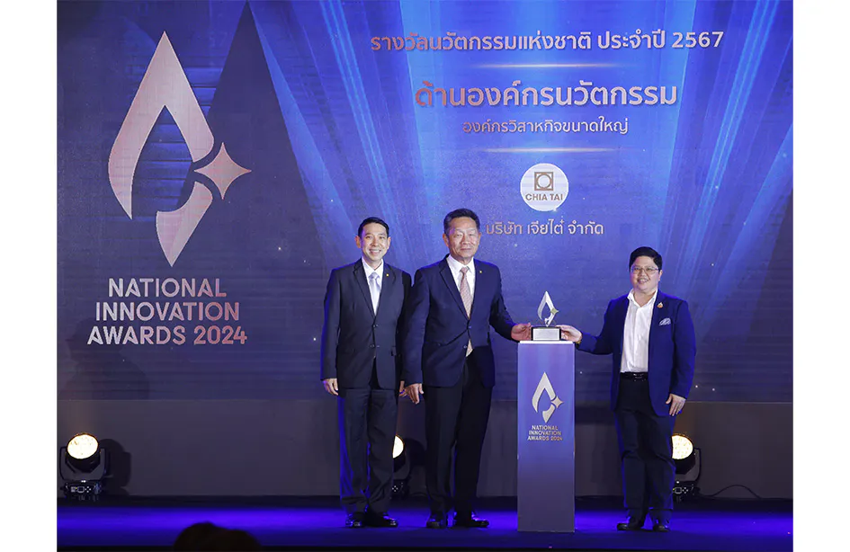 รางวัลนวัตกรรมแห่งชาติ ด้านองค์กรนวัตกรรมนี้ มอบให้กับองค์กรที่นำนวัตกรรมมาปรับใช้ ตั้งแต่ยุทธศาสตร์ กระบวนการ ถึงระดับโครงสร้างพื้นฐานการทำงาน สำหรับเจียไต๋ได้ยึดถือเรื่องการสร้างสรรค์นวัตกรรมเป็นหลักในการปฏิบัติงานและเป็นหนึ่งในสี่ค่านิยมหลักขององค์กร และด้วยวิสัยทัศน์ของเจียไต๋ในศตวรรษใหม่นี้ ได้มุ่งเป้าหมายในการส่งมอบโซลูชันทางการเกษตรเพื่อปลดล็อกความท้าทายต่างๆ ที่เกษตรไทยเผชิญอยู่ และเพื่อยกระดับเกษตรไทยสู่เกษตรยุคใหม่หรือสมาร์ทฟาร์มมิ่งที่ขับเคลื่อนด้วยเทคโนโลยี ซึ่งนอกจากช่วยเพิ่มประสิทธิภาพในการเพาะปลูกแล้ว ยังช่วยแก้ไขปัญหาเรื่องการขาดแคลน
