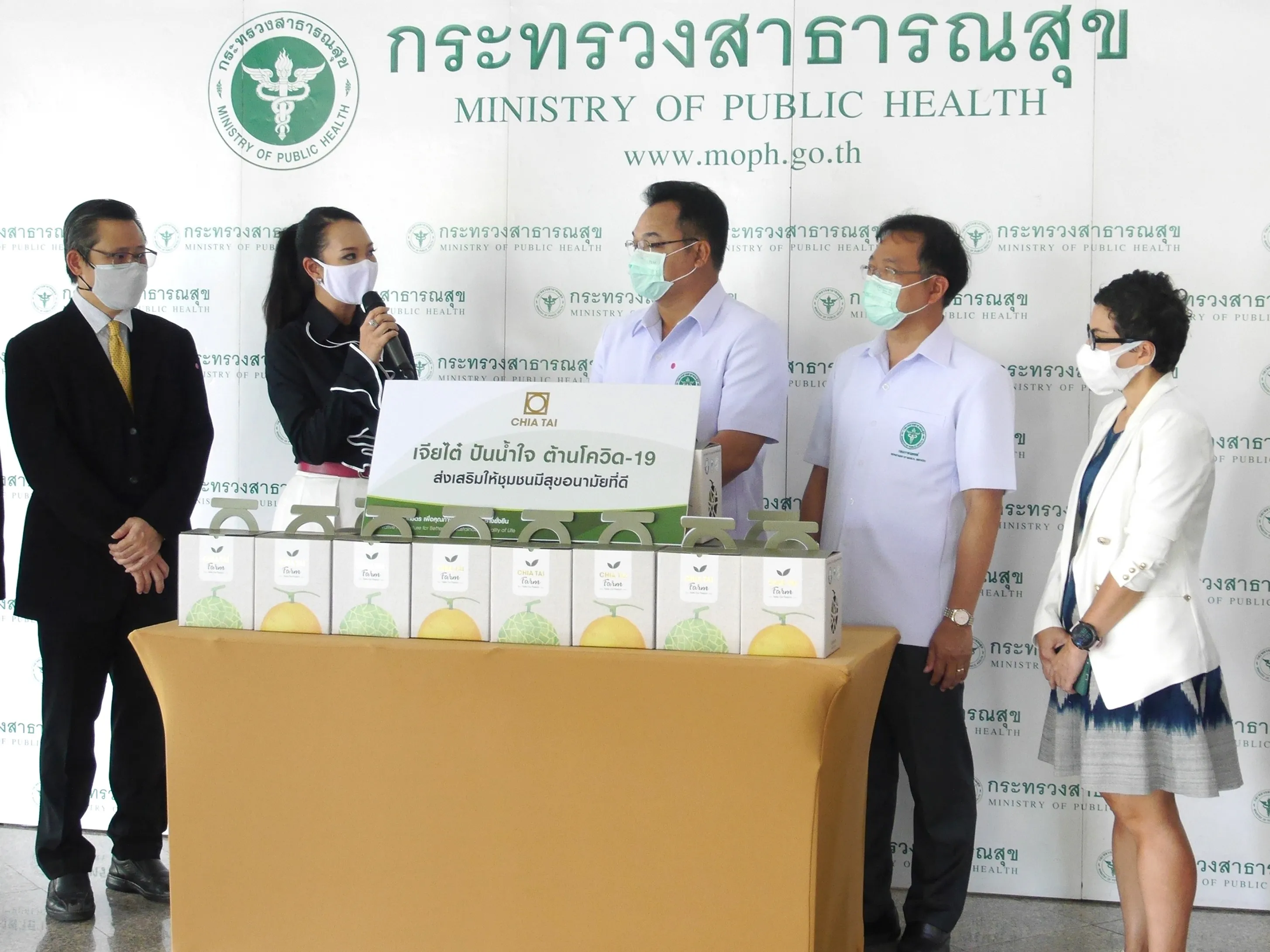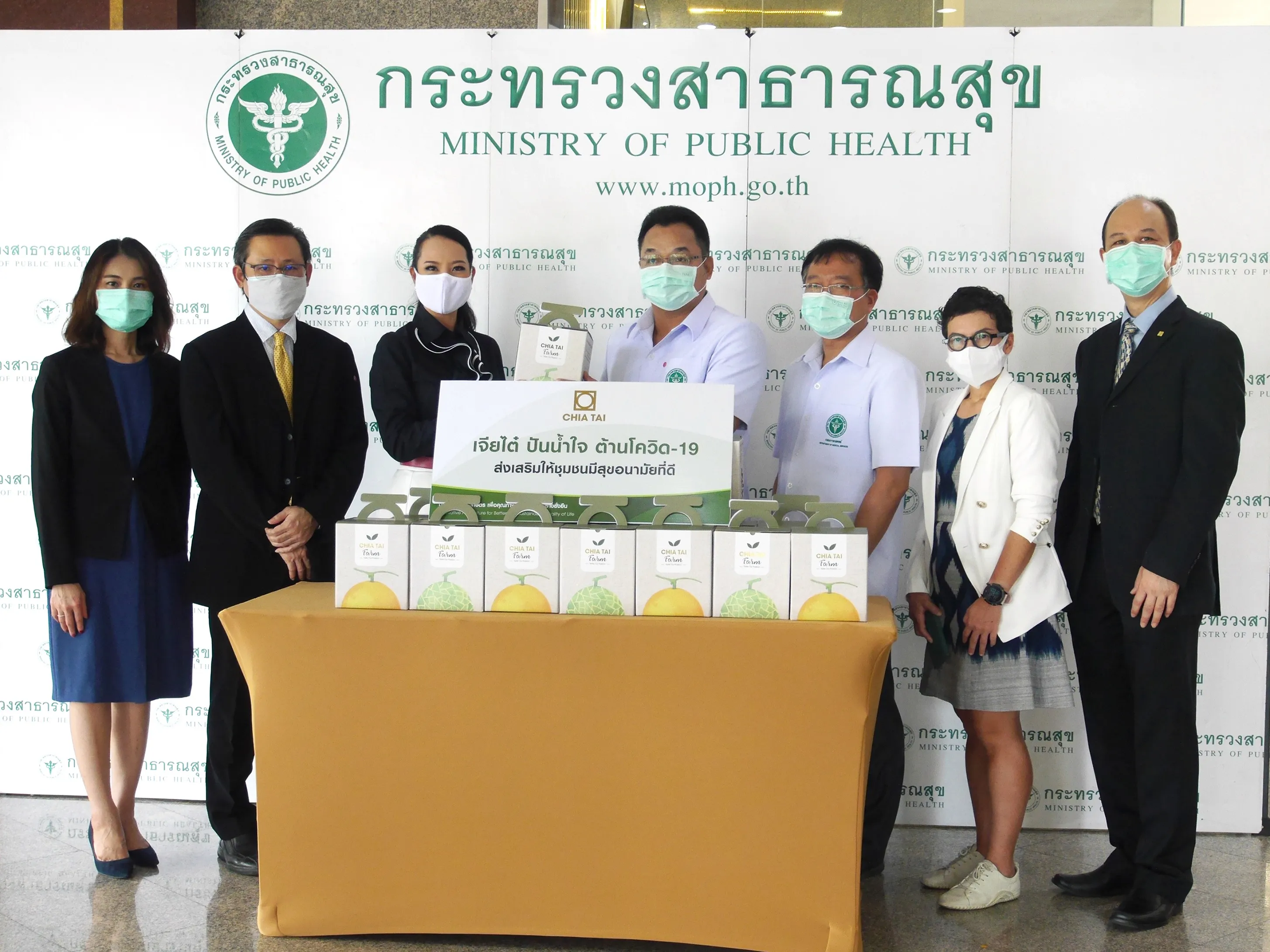 กรุงเทพฯ 1 กรกฎาคม 2564 – คณะผู้บริหาร บริษัท เจียไต๋ จำกัด ผู้นำธุรกิจนวัตกรรมการเกษตรของไทย เดินหน้าโครงการ “เจียไต๋ ปันน้ำใจ สู่ชุมชน” อย่างต่อเนื่อง เพื่อส่งเสริมสุขอนามัยและเสริมเกราะป้องกันโควิด-19 ให้ชุมชนและสังคมไทยสามารถก้าวผ่านวิกฤตครั้งนี้ไปด้วยกันภายใต้แนวคิดซีพีร้อยเรียงความดี โดยครั้งนี้ ได้ส่งมอบกำลังใจเพื่อสนับสนุนภารกิจการปฏิบัติงานสถานการณ์โรคโควิด-19 ของสำนักงานปลัดกระทรวงสาธารณสุข ผ่านการมอบผลิตผลสดเมล่อนมรกต เจียไต๋ ฟาร์ม จำนวน 500 ผล โดย นพ. ภูวเดช สุระโคตร ผู้ช่วยปลัดกระทรวงสาธารณสุข และ ผศ.นพ. ปราการ ถมยางกูร ที่ปรึกษากรมการแพทย์ ให้เกียรติเป็นผู้รับมอบ ณ สำนักงานปลัดกระทรวงสาธารณสุข