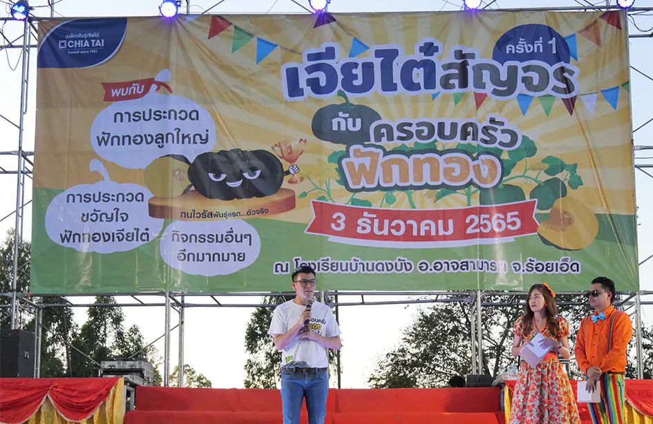 กรุงเทพฯ 21 ธันวาคม 2565 – เมื่อเร็วๆ นี้ เมล็ดพันธุ์เจียไต๋ โดยบริษัท เจียไต๋ จำกัด ผู้นำธุรกิจนวัตกรรมการเกษตรของไทย จัดกิจกรรมสัญจร ครั้งที่ 1 “ครอบครัวฟักทองเจียไต๋” ที่จังหวัดร้อยเอ็ด นำเสนอสายพันธุ์ฟักทองคุณภาพ พร้อมกระชับความสัมพันธ์กับพี่น้องเกษตรกรและคู่ค้า และเพื่อตอกย้ำความเป็นเจ้าตลาดฟักทองของไทย เมล็ดพันธุ์เจียไต๋ได้จัดประกวดฟักทองยักษ์ 4 สายพันธุ์คุณภาพ อาทิ ฟักทอง ทองอำไพ 426, ฟักทอง ทองอำไพ 342, ฟักทอง ศรีเมืองทองใหญ่ 050 และฟักทอง ทองสยาม ชิงแชมป์ฟักทองยักษ์ที่ล้วนมีน้ำหนักมากกว่า 10 กิโลกรัม
