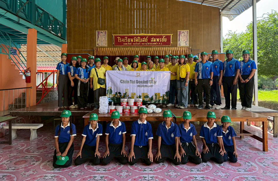 ในปีนี้ เจียไต๋ได้เดินหน้าจัดกิจกรรมที่บางน้ำเปรี้ยว เพื่อปลูกฝังความรู้ด้านเกษตรยุคใหม่ให้เยาวชนในชุมชน พร้อมส่งเสริมจิตสำนึกด้านสิ่งแวดล้อมในการใช้ทรัพยากรอย่างคุ้มค่า โดยเฉพาะการนำฟางข้าว ซึ่งเป็นวัสดุเหลือใช้ทางการเกษตรมาอัปไซเคิลสร้างคุณค่าใหม่ แทนการถูกเผาทิ้ง ช่วยลดการเกิด PM2.5 ลดการปล่อยก๊าซเรือนกระจก และสนับสนุนเป้าหมายด้านการลดคาร์บอนฟุตพริ้นท์ขององค์กร ซึ่งกิจกรรมนี้สามารถลดการปล่อยก๊าซเรือนกระจกทั้งหมด 1,420.6 กิโลกรัมคาร์บอนไดออกไซด์เทียบเท่า นอกจากนี้ กิจกรรมยังช่วยสร้างจิตสำนึกด้านสิ่งแวดล้อม ส่งเสริมความภาคภูมิใจในอาชีพเกษตรของครอบครัว รวมถึงเชื่อมความสัมพันธ์อันดีกับชุมชนและโรงเรียนใกล้เคียง โดยมีน้องๆ นักเรียนจำนวน 110 คน จากโรงเรียนวัดเกตุสโมสรเข้าร่วมเรียนรู้และลงมือทำร่วมกับพี่ๆ เจียไต๋อาสา พร้อมได้รับความร่วมมือจากสหกรณ์การเกษตรบางน้ำเปรี้ยว จำกัด มาร่วมสนับสนุนกิจกรรมในครั้งนี้