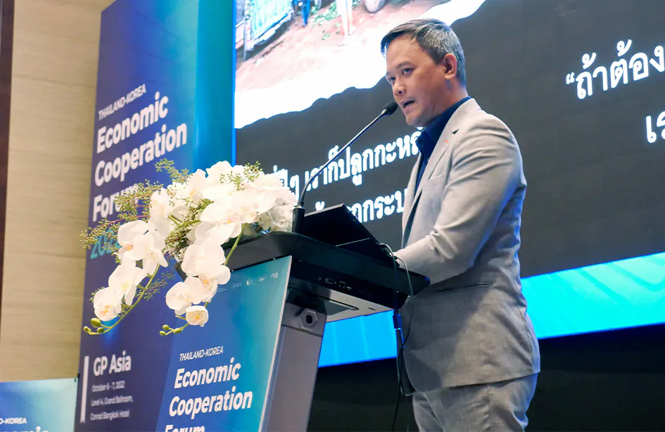 กรุงเทพฯ 7 ตุลาคม 2565 – บริษัท เจียไต๋ จำกัด ผู้นำธุรกิจนวัตกรรมการเกษตรของไทย โดย ดร. วัลลภัช แก้วอำไพ ประธานบริหารด้านกลยุทธ์องค์กร ร่วมเป็นวิทยากรแสดงวิสัยทัศน์พร้อมแชร์องค์ความรู้เกษตรอัจฉริยะในหัวข้อ Smart Farm Business ในงานสัมมนาความร่วมมือทางเศรษฐกิจไทยและเกาหลี หรือ Thailand – Korea Economic Cooperation Forum 2022 จัดโดยสำนักงานคณะกรรมการส่งเสริมการลงทุน (BOI) ร่วมกับสำนักงานส่งเสริมการค้าและการลงทุนเกาหลีใต้ (Korea Trade-Investment Promotion Agency – KOTRA) ในวันที่ 6 ตุลาคม 2565 ณ โรงแรมคอนราด กรุงเทพฯ