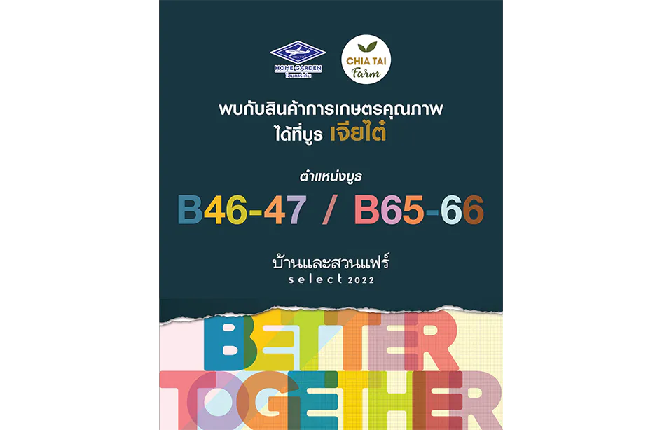 กรุงเทพฯ 18 มีนาคม 2565 – กลับมาเอาใจคนรักบ้านกันในงานบ้านและสวนแฟร์ Select 2022 ที่ปีนี้มาในธีม Better Together ซึ่งเจียไต๋โฮมการ์เด้นและเจียไต๋ฟาร์ม โดยกลุ่มบริษัทเจียไต๋ ผู้นำธุรกิจนวัตกรรมการเกษตรของไทย จะนำทัพสินค้าเกษตรตัวเด่นตัวดังมาให้เลือกสรร อาทิ เมล็ดพันธุ์เจียไต๋โฮมการ์เด้น วัสดุปลูกคุณภาพอย่างพีทมอส ปุ๋ย รวมถึงชุดสนุกปลูกที่มาในแพ็กเกจจิงน่ารักโดนใจคุณหนูตัวน้อยและนักปลูกมือใหม่ที่อยากลองปลูกพืชผัก นอกจากนี้ ยังมีผลิตผลสดเจียไต๋ฟาร์ม ถูกใจสายหวานผู้รักสุขภาพมาให้ชอปกันอย่างจุใจ เช่น เมล่อนมรกต เมล่อนสีเขียวรสหวานนุ่ม เมล่อนโกลเด้นสวีท เมล่อนสีส้มรสชาติหวานกรอบ ฟักทองมินิบอล ฟักทองบัตเตอร์นัท แตงโมซอนญ่า พลัส และพลาดไม่ได้กับเครื่องดื่มเมล่อนปั่นหวานละมุน เติมพลังและความสดชื่นให้การเดินชอปเดินชิล พิเศษกับโปรโมชั่นและกิจกรรมดีๆ ในงาน เพียงซื้อสินค้าครบ 500 บาท ลุ้นรับของรางวัลมากมาย แล้วมาพบกันที่บูธเจียไต๋ โซนต้นไม้และของแต่งสวน B65-B66 และB46-B47 ตั้งแต่วันที่ 19 มีนาคม 2565 ถึง 27 มีนาคม 2565 ที่ไบเทค บางนา