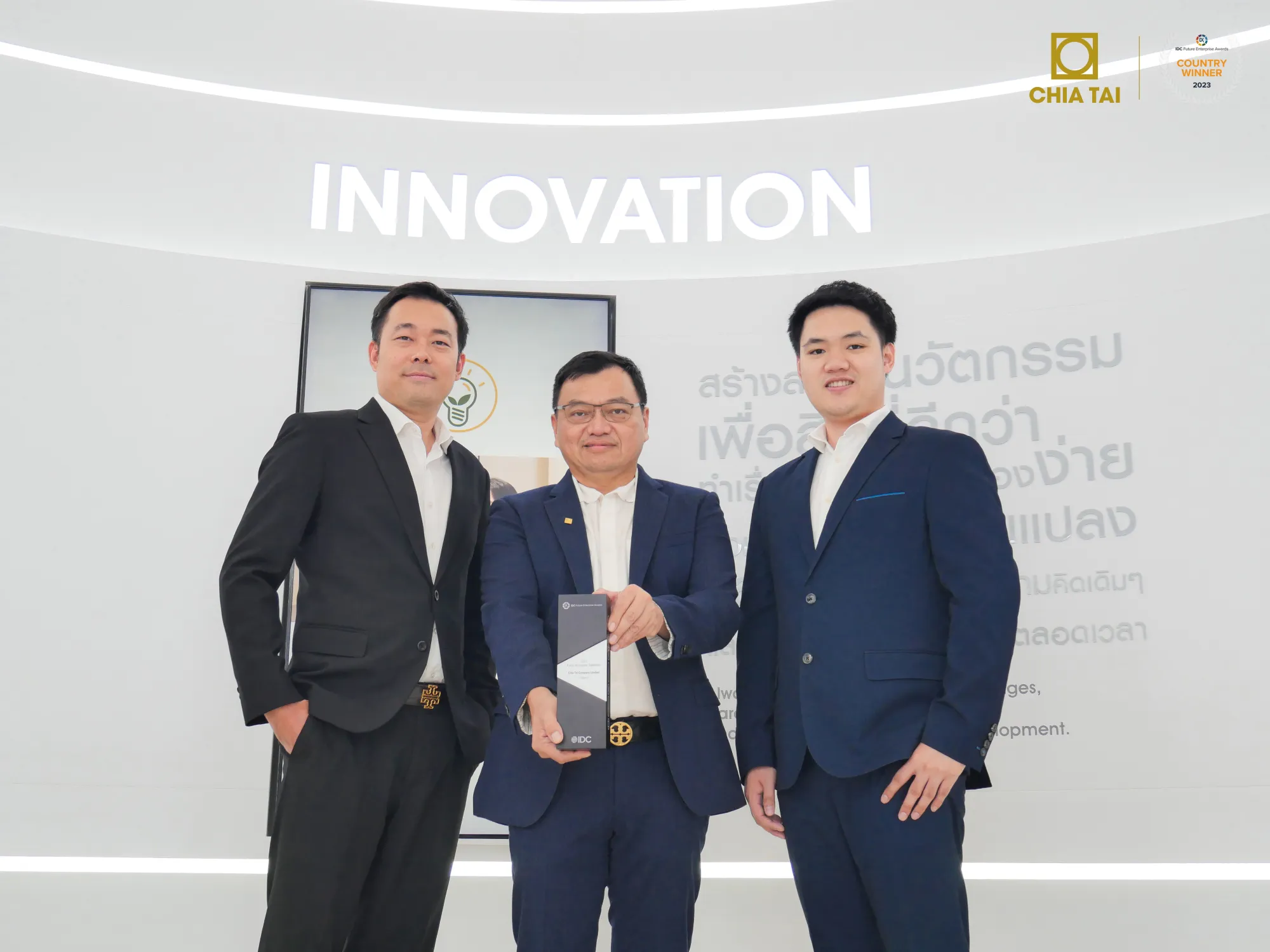 นายไพโรจน์ เกียรติศิริขจร ผู้ช่วยกรรมการผู้จัดการ ฝ่ายเทคโนโลยีสารสนเทศ เผยว่า “ในฐานะตัวแทนของเจียไต๋ รู้สึกเป็นเกียรติอย่างยิ่งที่เจียไต๋ได้รับรางวัล Best in Future of Customer Experience Thailand ในครั้งนี้ จากการที่องค์กรมีความโดดเด่นด้านการนำเทคโนโลยีมาปรับใช้เพื่อสร้างประสบการณ์ที่ดีที่สุดให้แก่ลูกค้าคนสำคัญของเรา ซึ่งรางวัลนี้ ถือเป็นการสะท้อนและตอกย้ำความมุ่งมั่นของเจียไต๋ ที่ต้องการส่งมอบนวัตกรรมการเกษตรด้วยผลิตภัณฑ์ และบริการที่มีคุณภาพสูงสุด