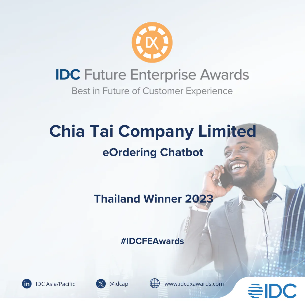 สำหรับ IDC Future Enterprise Awards 2023 จัดโดย IDC ASEAN ประเทศสิงคโปร์ เป็นรางวัลด้านนวัตกรรมที่ยิ่งใหญ่ที่สุดในภูมิภาคเอเชียแปซิฟิก จัดขึ้นเพื่อยกย่ององค์กรที่นำเทคโนโลยีมาปรับใช้อย่างไร้รอยต่อ มุ่งเน้นการดำเนินงานที่ใช้ข้อมูลเป็นพื้นฐาน พัฒนานวัตกรรมด้านดิจิทัล พัฒนาประสบการณ์ของลูกค้า เพื่อเพิ่มมูลค่าให้กับผลิตภัณฑ์และบริการในรูปแบบดิจิทัล จนบรรลุเป้าหมายทางธุรกิจและมีผลลัพธ์ที่วัดผลได้