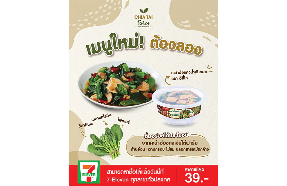 โดยล่าสุดผู้บริโภคสามารถหาซื้อ “คะน้าฮ่องกง โอเชี่ยน” ในเมนูพร้อมรับประทานอย่างคะน้าฮ่องกงน้ำมันหอยได้แล้วทาง 7-Eleven โดยแบรนด์ EZYGO ได้นำมาปรุงคู่กับเนื้อหมูและเห็ดหอม คลุกเคล้าซอสรสชาติกลอมกล่อม เพิ่มความเข้มข้นลงตัวด้วยพริกขี้หนูเล็กน้อย รับประทานคู่กับข้าวสวยร้อนๆ ความอร่อยลงตัวมาพร้อมสุขภาพดีที่ต้องบอกต่อ