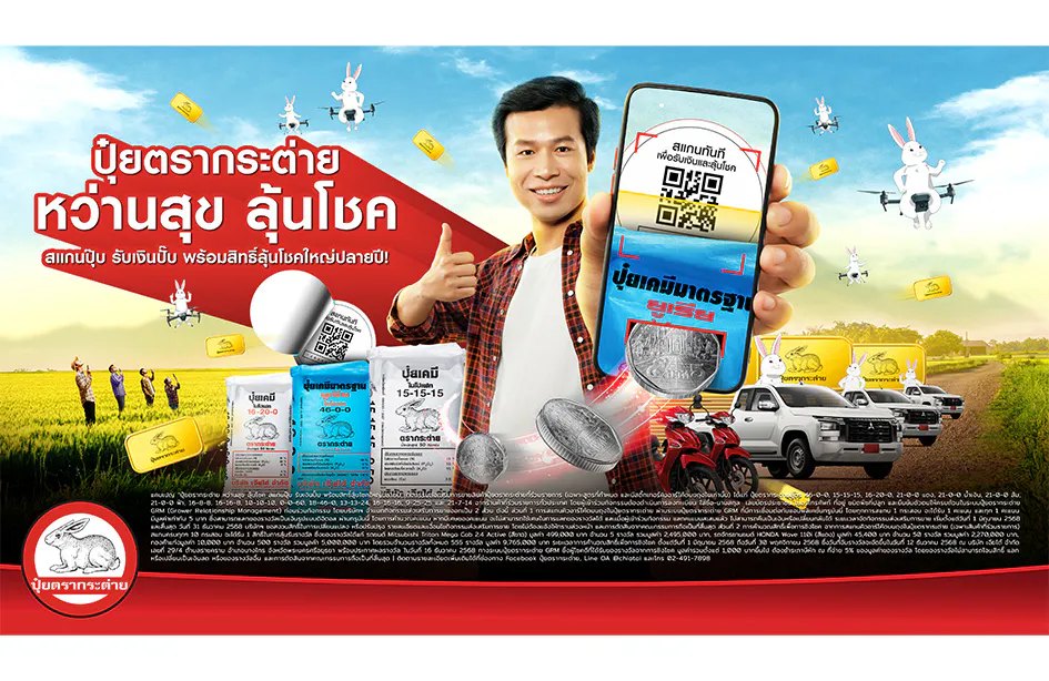 กับ ปุ๋ยตรากระต่าย หว่านสุข ลุ้นโชค สแกนปุ๊บ รับเงินปั๊บ พร้อมสิทธิ์ลุ้นโชคใหญ่ปลายปี