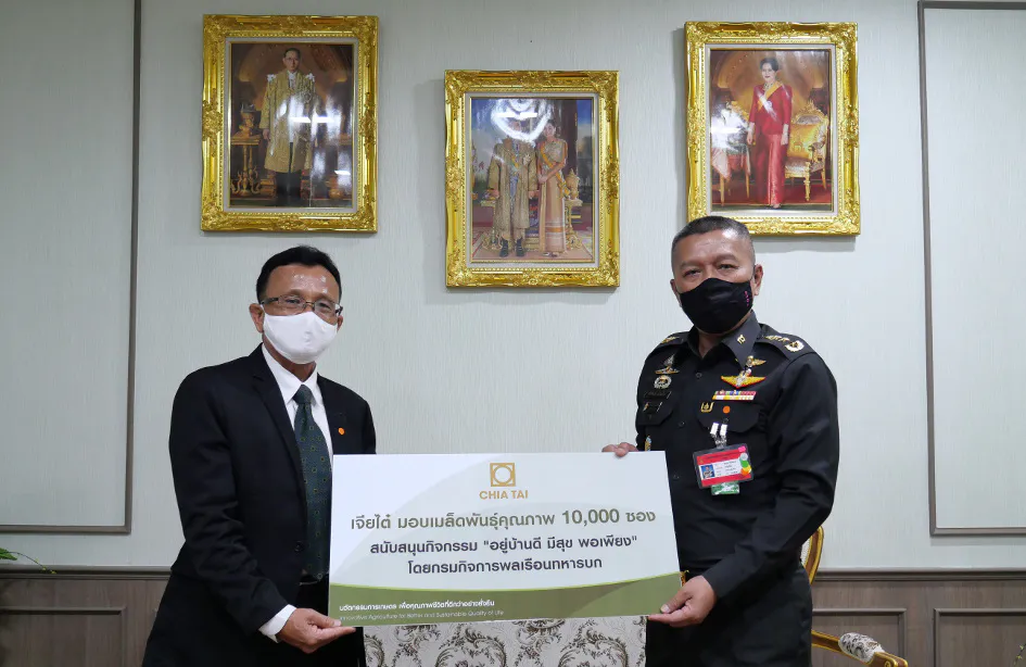 กรุงเทพฯ 30 มิถุนายน 2563 – นายบุญมี ออกแมน รองกรรมการผู้จัดการ ธุรกิจเมล็ดพันธุ์ บริษัท เจียไต๋ จำกัด ส่งมอบเมล็ดพันธุ์ผักสวนครัวจำนวน 10,000 ซอง ให้กับ พล.ท. สันติพงศ์ ธรรมปิยะ เจ้ากรมกิจการพลเรือนทหารบก กรมกิจการพลเรือนทหารบก ณ กรมกิจการพลเรือนทหารบก กองบัญชาการกองทัพบก สนับสนุนกิจกรรมรณรงค์ "อยู่บ้านดี มีสุข พอเพียง" ส่งเสริมการปลูกผักเพื่อรับประทานในครัวเรือน ช่วยลดรายจ่าย และสร้างกิจกรรมที่มีประโยชน์ มุ่งหมายการสร้างความมั่นคงทางอาหารในระยะยาว อีกทั้ง เพื่อให้ประชาชนที่ได้รับผลกระทบจากสถานการณ์การแพร่ระบาดของโรคติดต่อไวรัสโคโรนา (โควิด-19) สามารถพึ่งพาตนเองได้ โดยกรมกิจการพลเรือนทหารบกจัดสรรหน่วยทหารลงพื้นที่ตามจังหวัดต่างๆ เพื่อแจกจ่ายและส่งเสริมการปลูกผักที่เป็นที่นิยม ปลูกง่าย และเติบโตไว ได้แก่ คะน้ายอด ผักบุ้งจีนเรียวไผ่ เขียวกวางตุ้ง และกะเพรา ให้กับประชาชนในพื้นที่รับผิดชอบต่อไป