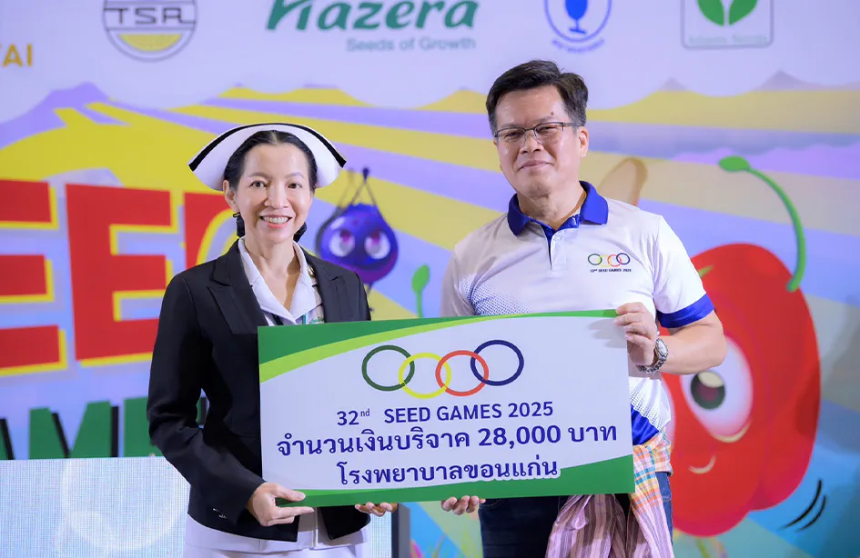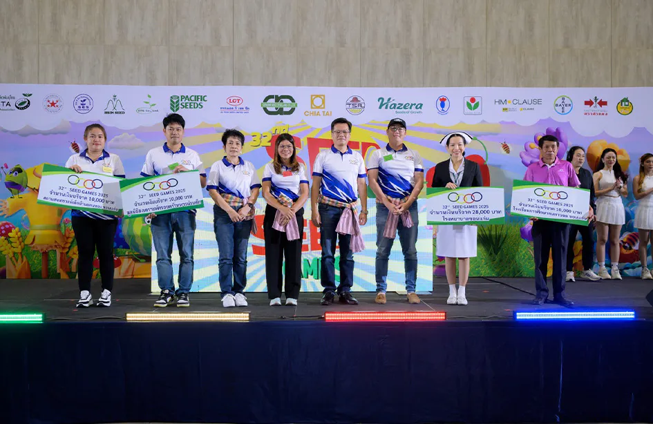 นอกจากความสนุกสนานและการแลกเปลี่ยนองค์ความรู้แล้ว คณะผู้จัดงาน “Seed Games” ครั้งที่ 32 ยังได้ร่วมส่งต่อพลังแห่งการแบ่งปัน ด้วยการมอบเงินบริจาคแก่โรงพยาบาลขอนแก่น เพื่อสนับสนุนงานด้านสาธารณสุขและช่วยเหลือผู้ป่วยในพื้นที่ พร้อมทั้งมอบเงินสนับสนุนเพิ่มเติมให้กับหน่วยงานต่างๆ ได้แก่ สถานสงเคราะห์เด็กบ้านแคนทอง จังหวัดขอนแก่น, มูลนิธิสงเคราะห์ครอบครัวทหารผ่านศึก และโรงเรียนการศึกษาคนตาบอด จังหวัดขอนแก่น สะท้อนถึงพลังแห่งการรวมใจที่ไม่เพียงมุ่งพัฒนาวงการเมล็ดพันธุ์ แต่ยังสร้างคุณค่ากลับคืนสู่สังคมในหลากหลายมิติอย่างแท้จริง