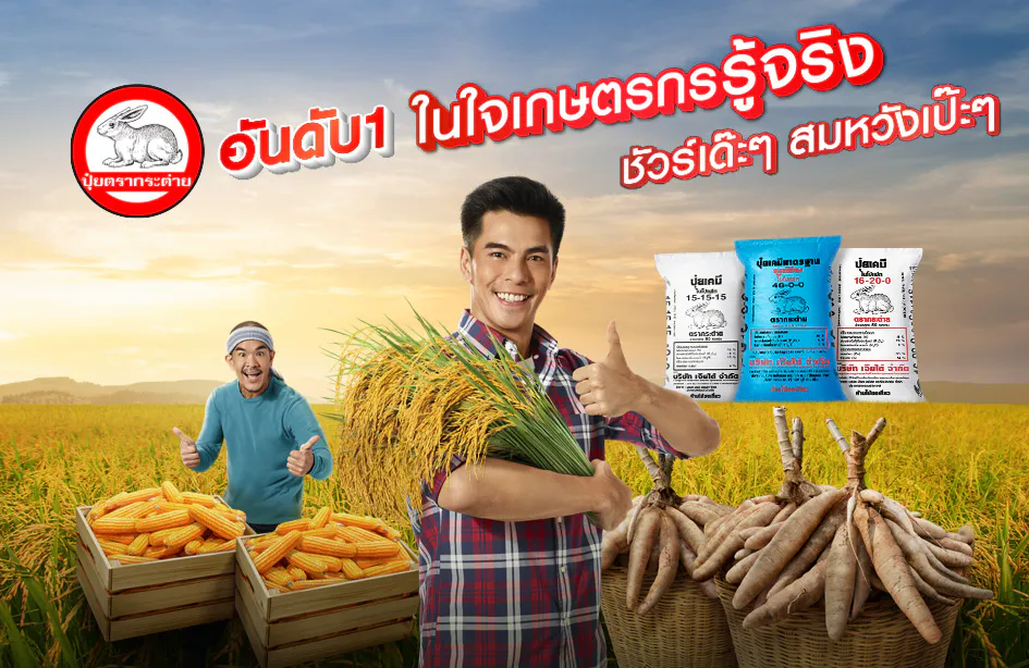 ติดตามชมภาพยนตร์โฆษณาปุ๋ยตรากระต่ายชุดใหม่ล่าสุด “ชัวร์เด๊ะๆ สมหวังเป๊ะๆ” ให้พี่น้องเกษตรกรทุกท่านมั่นใจกับผลิตผลคุณภาพดี แบบชัวร์เด๊ะ เด๊ะ ไม่มีผิดหวัง ได้ทางโทรทัศน์และช่องทางออนไลน์ที่ Facebook ปุ๋ยตรากระต่าย https://www.facebook.com/puitrakratai ทางYouTube ปุ๋ยตรากระต่าย: www.youtube.com/c/Puitrakratai และทาง Tiktok ปุ๋ยตรากระต่ายhttps://www.tiktok.com/@puitrakratai