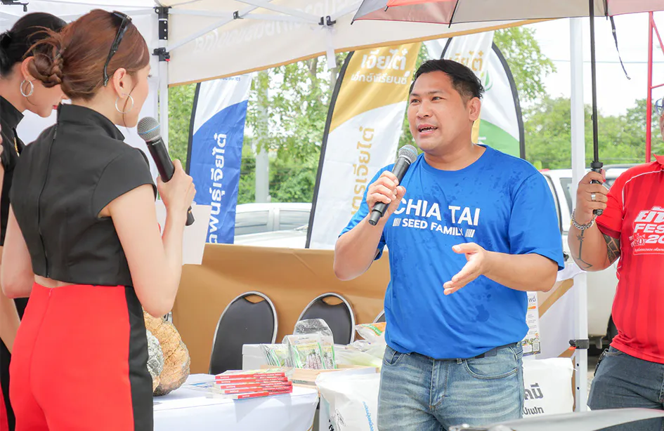 ขณะเดียวกัน บนเวทีกลางของงาน ยังมีการจัด Stage Talk ในหัวข้อ “โซลูชันครบวงจรเพื่อเกษตรกรไทย ก้าวสู่อนาคตที่ยั่งยืน” โดยคุณอนงค์นารถ วัชรธรรม General Manager, Business Development and External Relation บริษัท เจียไต๋ จำกัด และคุณประหยัด ก้อนทอง ผู้จัดการฝ่ายประสานงานหน่วยงานและองค์ภาครัฐ บริษัท ยันม่าร์ เอส.พี. จำกัด ร่วมถ่ายทอดมุมมองและแลกเปลี่ยนแนวทางการพัฒนา การร่วมมือกันระหว่างเจียไต๋และยันม่าร์ เพื่อยกระดับอาชีพเกษตรกรไทยให้แข็งแกร่งและยั่งยืน