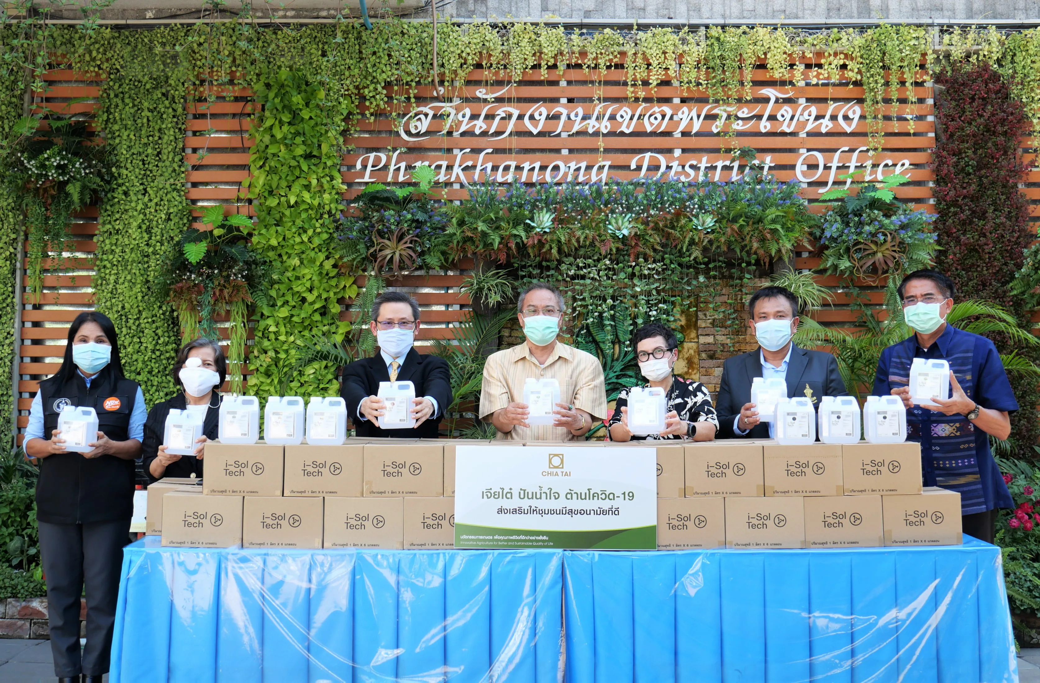 กรุงเทพฯ 17 พฤษภาคม 2564 – บริษัท เจียไต๋ จำกัด ผู้นำธุรกิจนวัตกรรมการเกษตรของไทย จับมือกับสำนักงานเขตพระโขนง เพื่อส่งเสริมให้ชุมชนรอบข้างเจียไต๋ สำนักงานใหญ่ สุขุมวิท 60 ฝ่าวิกฤตโควิด-19 ในโครงการ “เจียไต๋ ปันน้ำใจ สู่ชุมชน” ด้วยการสนับสนุนผลิตภัณฑ์สเปรย์ไอโซลเทค (i-Sol Tech) สเปรย์ยับยั้งการเจริญเติบโตของเชื้อโรคจำนวน 600 ลิตร แก่สำนักงานเขตพระโขนง โดยมีนายเรืองเดช พงษ์จันทรโอ ผู้อำนวยการเขตพระโขนง เป็นผู้รับมอบ เพื่อใช้ป้องกันการแพร่ระบาดของโควิด-19 ให้กับหน่วยงานต่างๆ และประชาชนในพื้นที่ชุมชนเขตพระโขนง อาทิ เจ้าหน้าที่รักษาความสะอาด เจ้าหน้าที่ฝ่ายโยธา สถานีดับเพลิง วัด รวมถึงกลุ่มผู้สูงอายุที่ป่วยติดเตียงภายในชุมชน ทั้งนี้ เพื่อเป็นอีกหนึ่งกำลังสำคัญในการส่งเสริมสุขอนามัยและเสริมเกราะป้องกันโควิด-19 ให้ชุมชนสามารถก้าวผ่านวิกฤตครั้งนี้ไปด้วยกัน ซึ่งตรงตามความมุ่งมั่นของเจียไต๋ในการช่วยเหลือสังคมและชุมชนในภาวะวิกฤตภายใต้แนวคิดซีพีร้อยเรียงความดี ตลอดจนตอกย้ำเจตนารมณ์ของเจียไต๋ที่มุ่งยกระดับคุณภาพชีวิตของผู้คนให้ดีขึ้นอย่างยั่งยืน